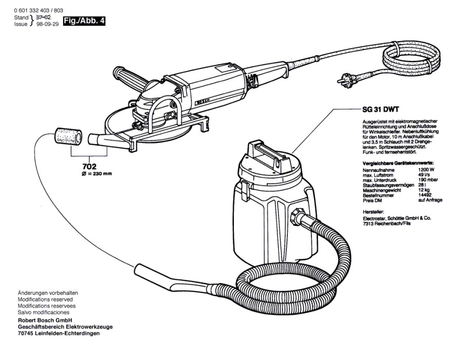 Zeichnung Bosch Winkelschleifer 0 601 332 803: