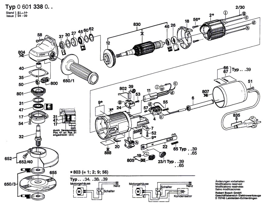 Zeichnung Bosch Winkelschleifer 0 601 338 033: