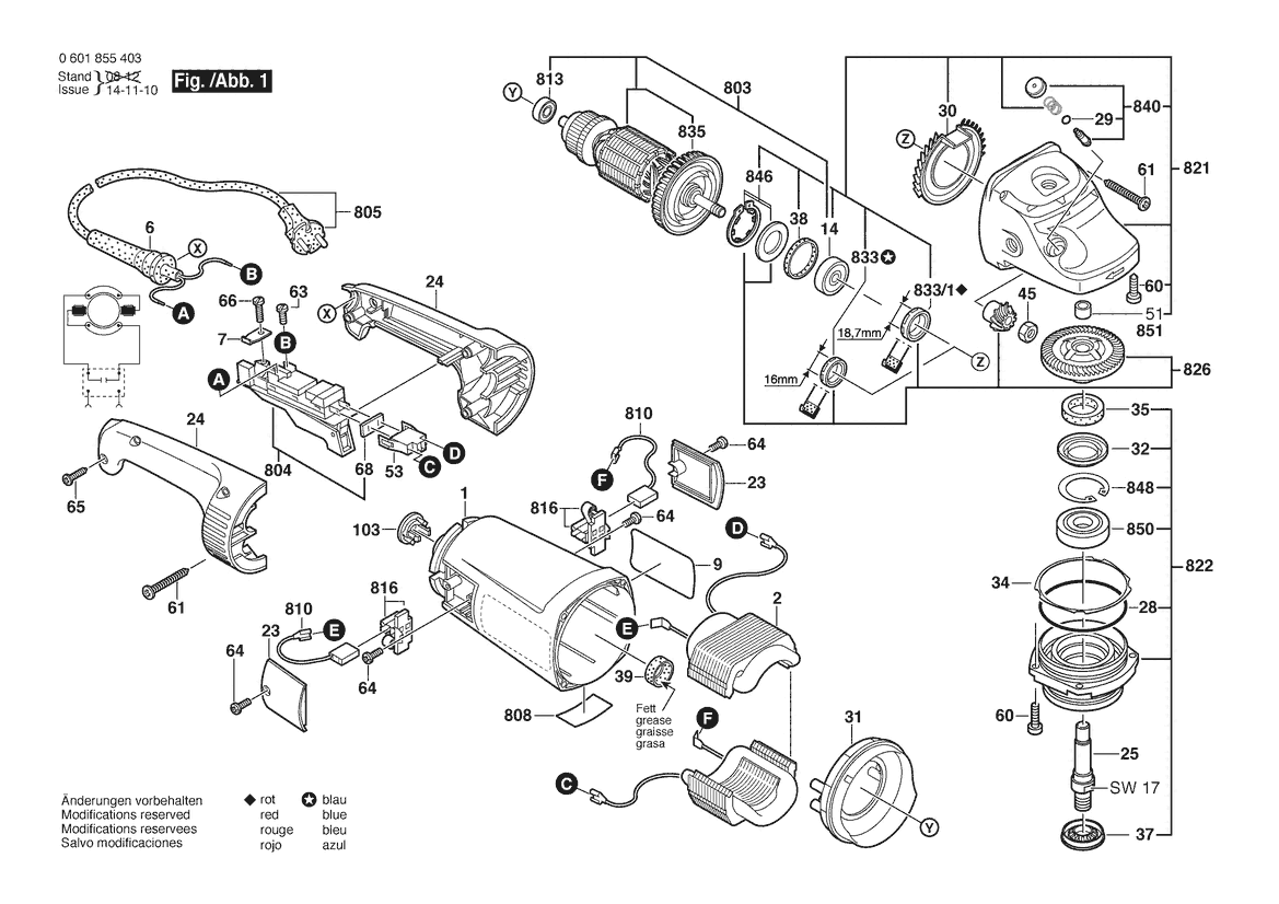Zeichnung Sollten Sie Fragen zu einem Ersatzteil vom Bosch Winkelschleifer GWS 26-180 H | 230 V | 001 - EU (0 601 855 493) haben, können Sie uns gerne eine E-Mail (mit einem Foto vom Typenschild Ihres Gerätes) schreiben oder eine Ersatzteilanfrage stellen.