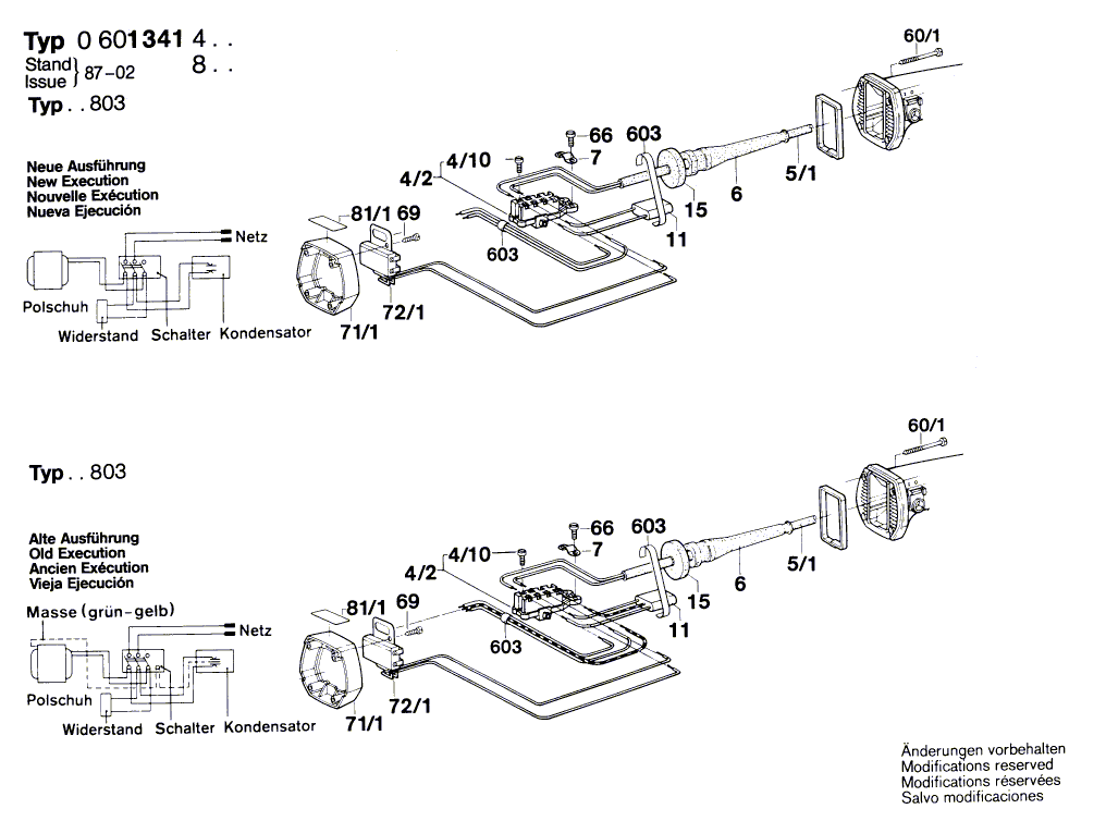 Zeichnungen von Bosch Winkelschleifer HV 81 mit der Geräte-Artikelnummer 0 601 341 803