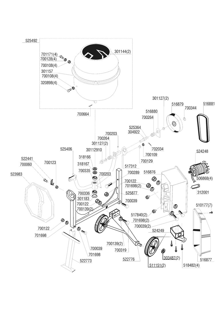 Zeichnungen von AL-KO Betonmörtelmaschinen ZB 1701 S HR SK2 mit der Geräte-Artikelnr. 117670:
