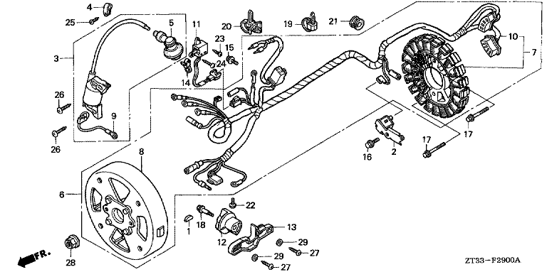 Ersatzteile für Honda Stromerzeuger EX7 F (F/A) Baugruppe ZUENDSPULE/GENERATOR (EX7/7K1/700C)