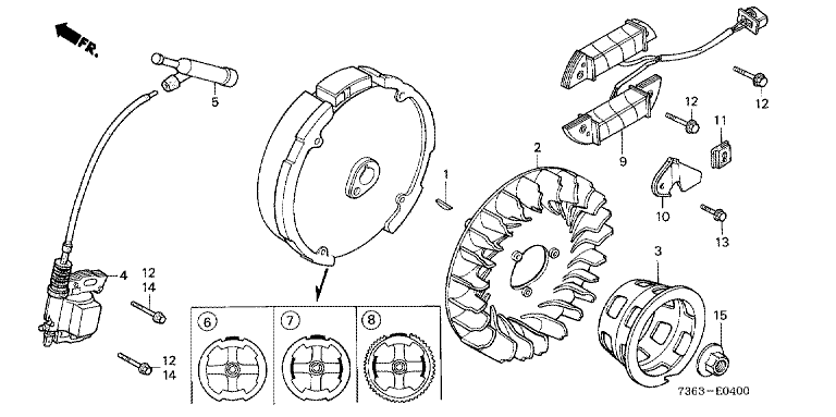 Ersatzteile für Honda Schneefräsen HS55K1 TG (TG) Baugruppe ZUENDSPULE/SCHWUNGRAD