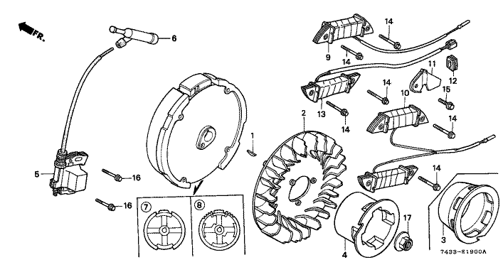 Ersatzteile für Honda Schneefräsen HS622K1 HTS (HTS/A) Baugruppe ZUENDSPULE/SCHWUNGRAD