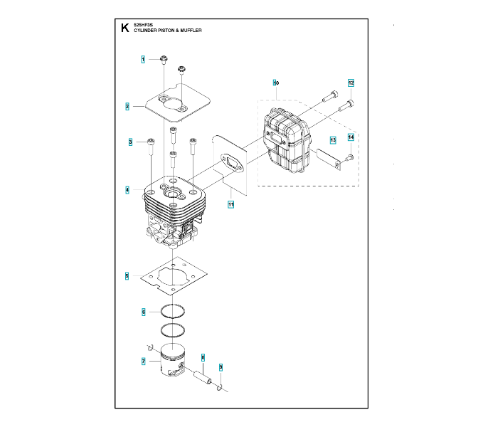 Zeichnung für Husqvarna Heckenscheren/Stabheckenscheren ZYLINDER, KOLBEN & SCHALLDÄMPFER Sollten Sie Fragen zu einem Ersatzteil von Husqvarna Heckenscheren/Stabheckenscheren 525HF3S haben, können Sie uns gerne eine Ersatzteilanfrage (mit einem Foto vom Typenschild Ihres Gerätes) stellen.