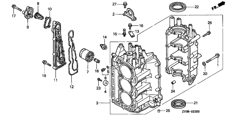 Ersatzteile für Honda Außenbordmotoren BF30A1 LRSA (LRSA) Baugruppe ZYLINDERBLOCK