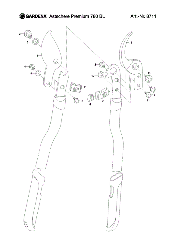 Ersatzteile für Gardena Astschere 760 BL aus der Zeichnung 1 (ab 2018 Jun) Gültig für Artikelnummer: 8711