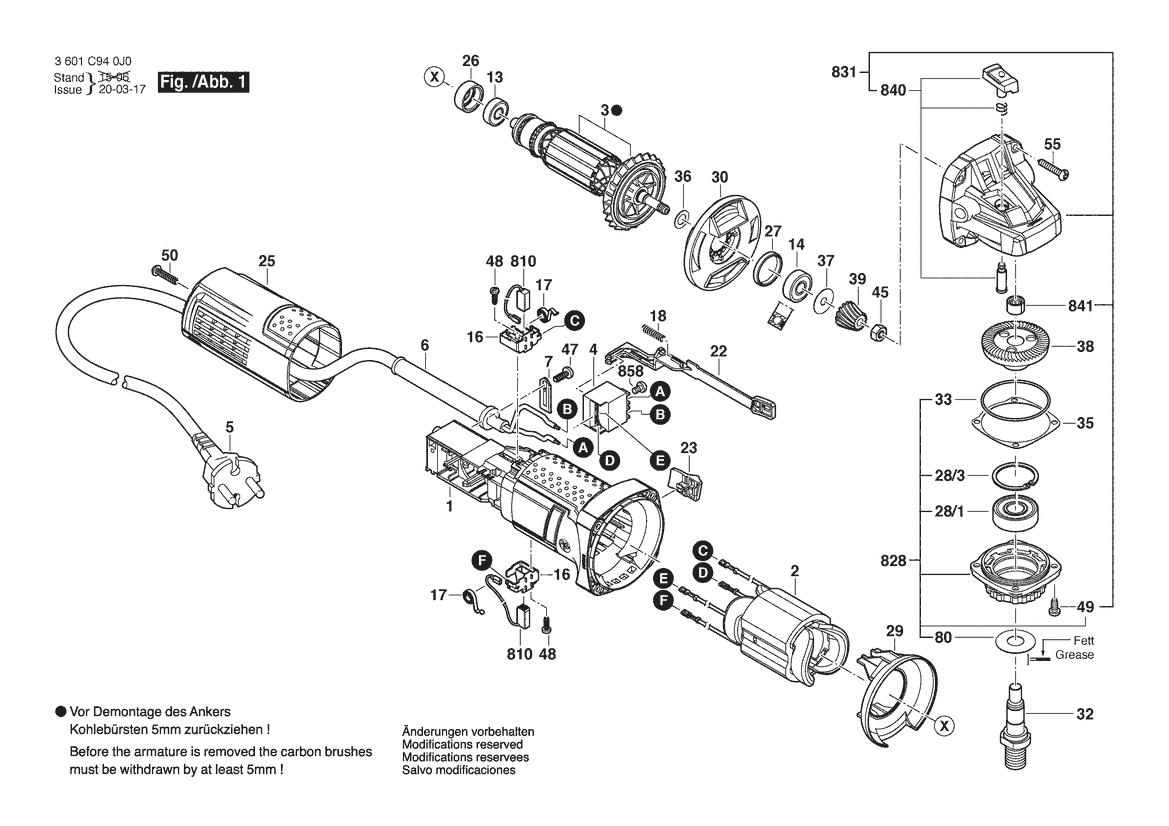 Ersatzteile für Bosch Winkelschleifer WS 7-115 | 127 V (3 601 C94 0D1)