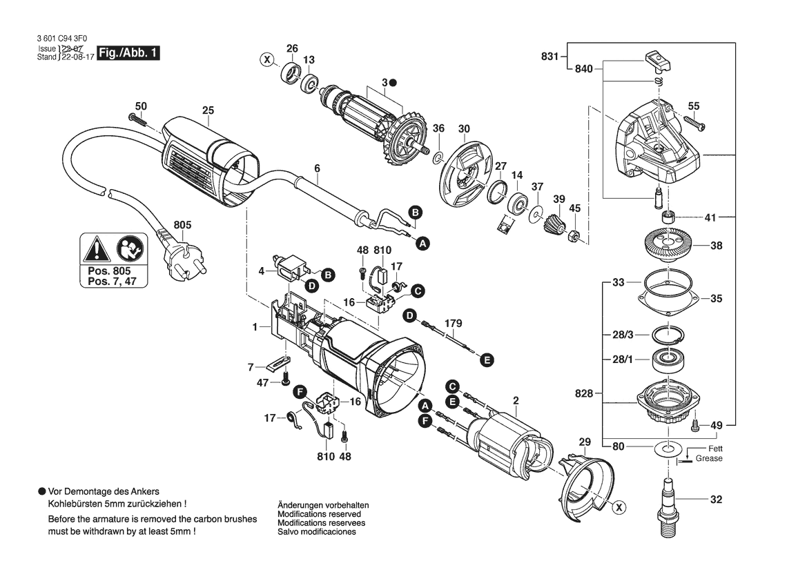 Zeichnung Sollten Sie Fragen zu einem Ersatzteil vom Bosch Winkelschleifer GWS 800 | 230 V | 041 - IN (3 601 C94 3F0) haben, können Sie uns gerne eine E-Mail (mit einem Foto vom Typenschild Ihres Gerätes) schreiben oder eine Ersatzteilanfrage stellen.