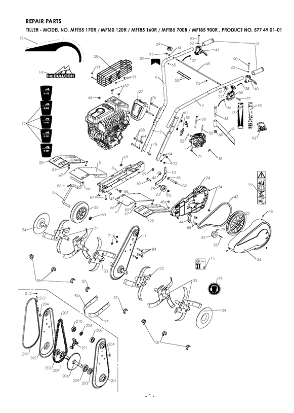 Zeichnung 1 Sollten Sie Fragen zu einem Ersatzteil von McCulloch Bodenpflegegerät MFT60-120R Bj. ab Dez 2014 haben, können Sie uns gerne eine E-Mail (mit einem Foto vom Typenschild Ihres Gerätes) schreiben oder eine Ersatzteilanfrage stellen.