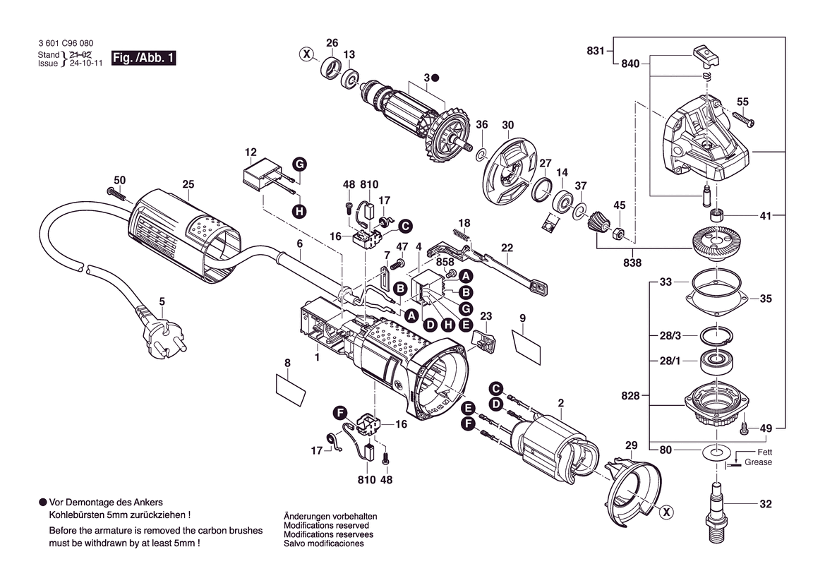 Folgende Ersatzteile für Bosch Winkelschleifer GWS 900-100 | 220 V | 009 - CN (3 601 C96 080) können Sie hier bestellen: