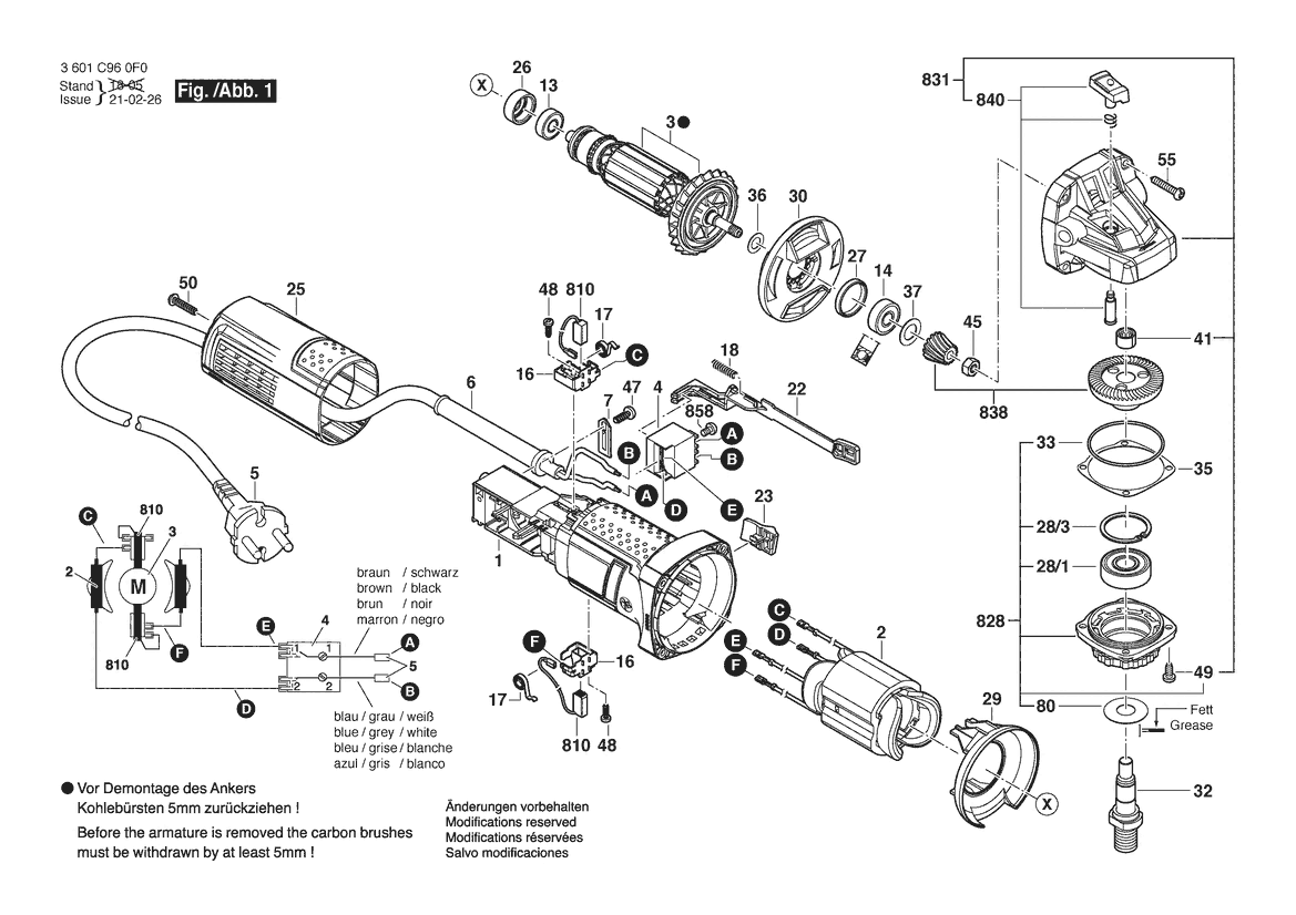 Zeichnung Sollten Sie Fragen zu einem Ersatzteil vom Bosch Winkelschleifer GWS 900-100 | 240 V | 020 - MY (3 601 C96 0L0) haben, können Sie uns gerne eine E-Mail (mit einem Foto vom Typenschild Ihres Gerätes) schreiben oder eine Ersatzteilanfrage stellen.