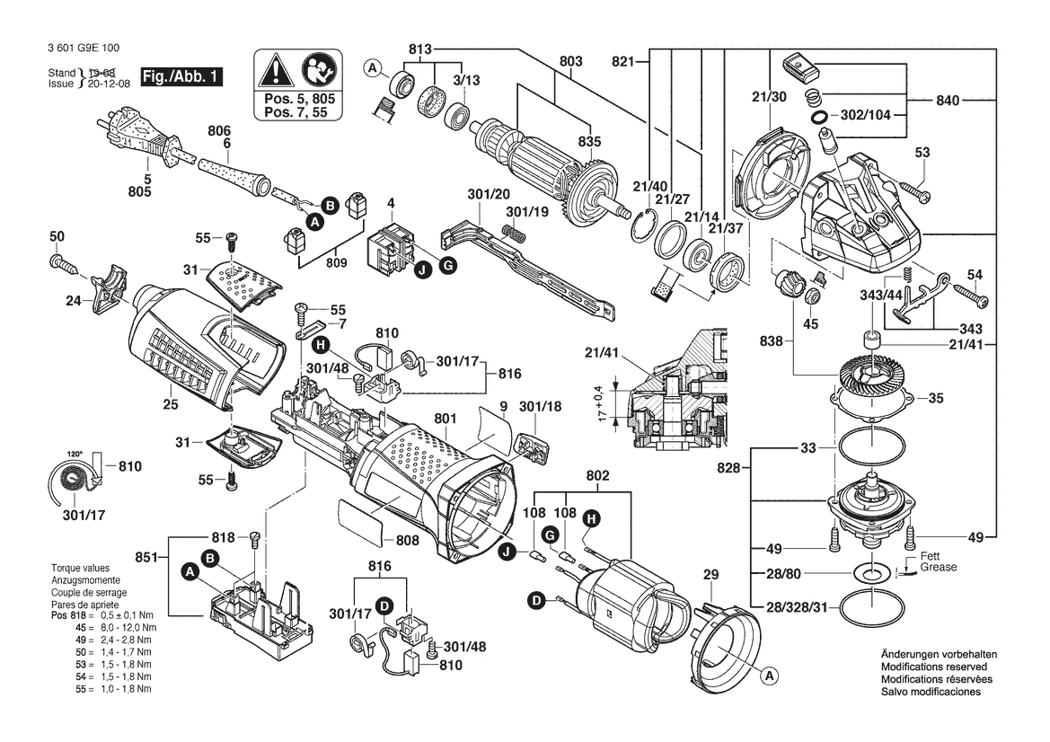 Ersatzteile für Bosch Winkelschleifer GWS 13-125 CIX | 230 V | 001 - EU (3 601 G9E 100)