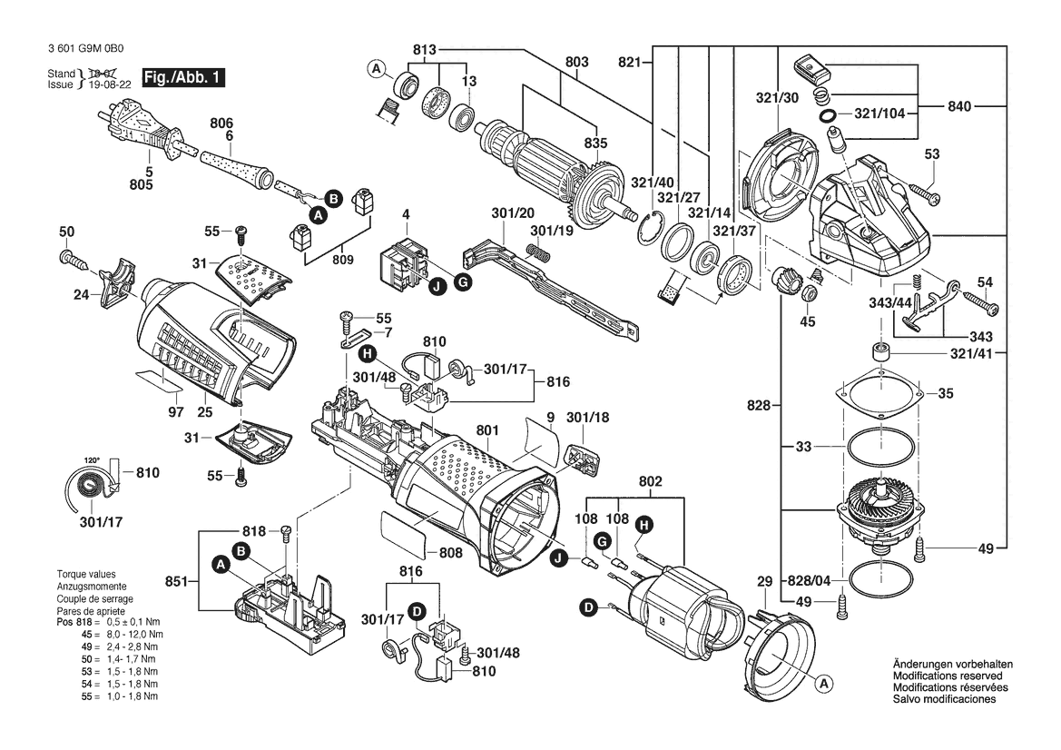 Ersatzteile für Bosch Winkelschleifer GWS 17-125 INOX | 220 V | 011 - KR (3 601 G9M 0B0)
