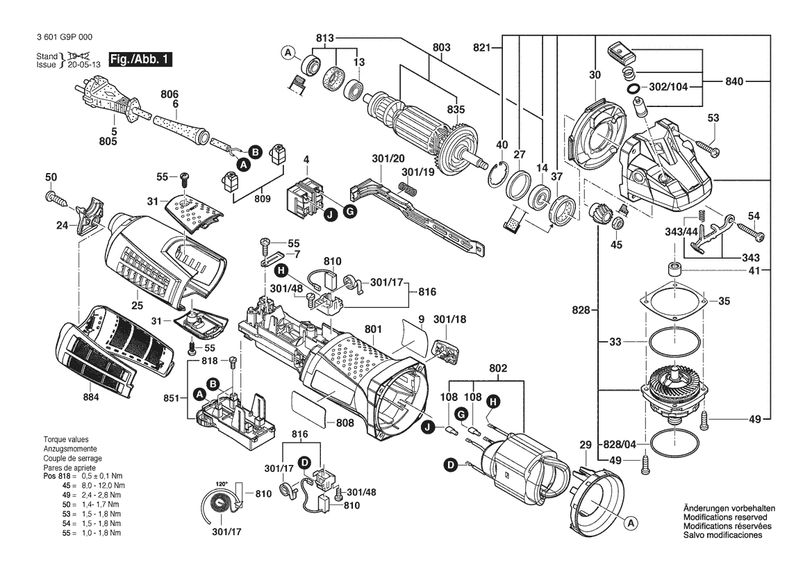 Folgende Ersatzteile für Bosch Winkelschleifer GWS 19-125 CIE | 230 V | 001 - EU (3 601 G9P 000) können Sie hier bestellen: