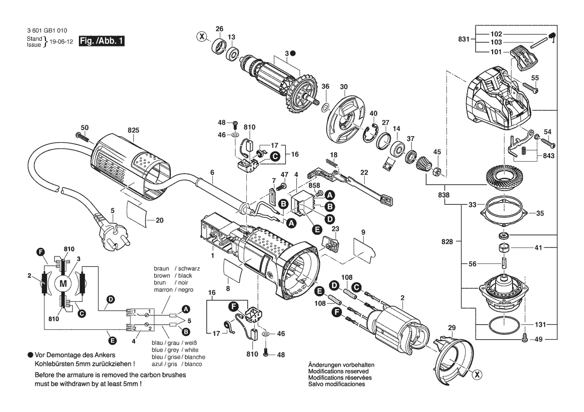 Zeichnung Sollten Sie Fragen zu einem Ersatzteil vom Bosch Winkelschleifer GWX10-45E | 120 V | 061 - US (3 601 GB1 010) haben, können Sie uns gerne eine E-Mail (mit einem Foto vom Typenschild Ihres Gerätes) schreiben oder eine Ersatzteilanfrage stellen.