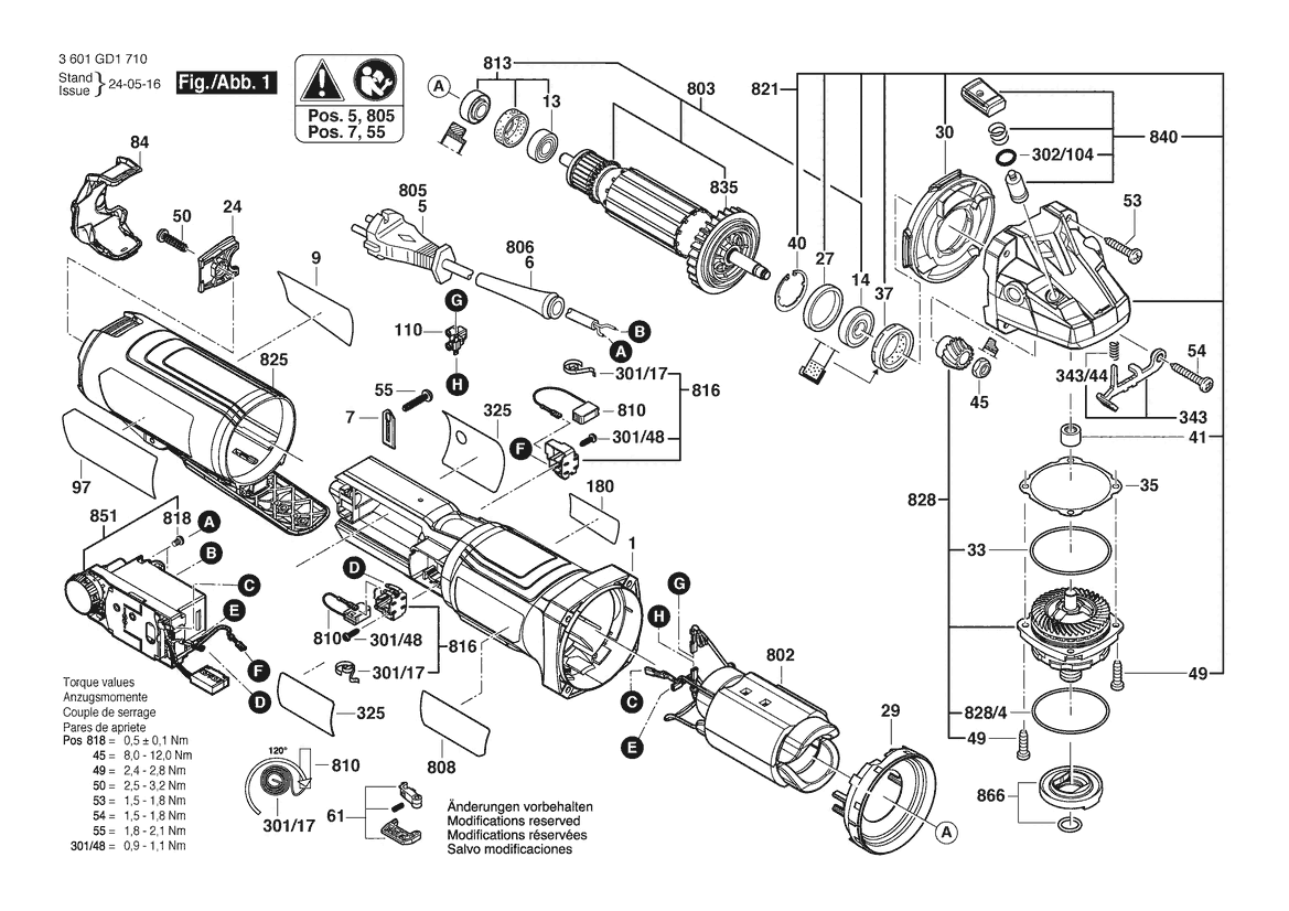 Zeichnung Sollten Sie Fragen zu einem Ersatzteil vom Bosch Winkelschleifer GWS14-50PBD | 061 - US (3 601 GD1 710) haben, können Sie uns gerne eine E-Mail (mit einem Foto vom Typenschild Ihres Gerätes) schreiben oder eine Ersatzteilanfrage stellen.