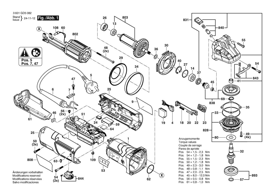 Zeichnung Sollten Sie Fragen zu einem Ersatzteil vom Bosch Winkelschleifer GWS 20-125 SB | 026 - AS (3 601 GD5 0K2) haben, können Sie uns gerne eine E-Mail (mit einem Foto vom Typenschild Ihres Gerätes) schreiben oder eine Ersatzteilanfrage stellen.