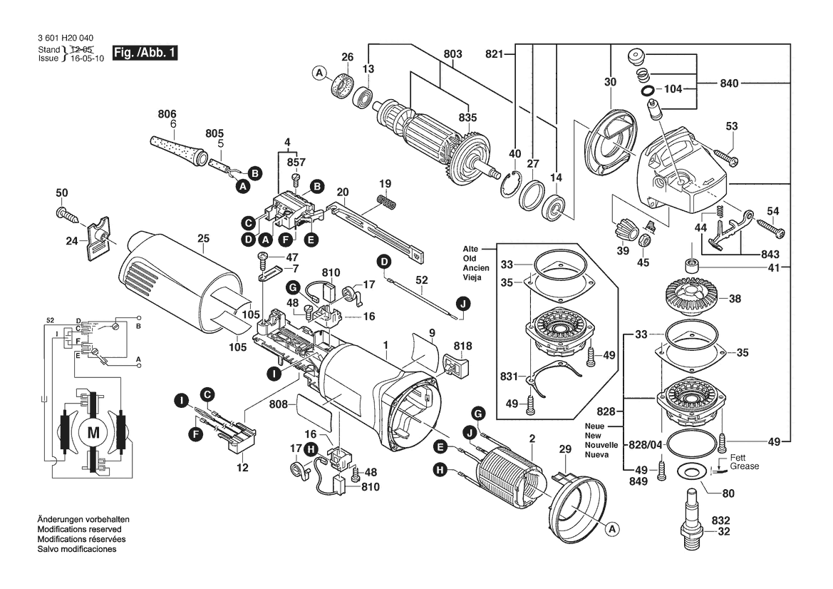 Zeichnung Sollten Sie Fragen zu einem Ersatzteil vom Bosch Winkelschleifer GWS 8-115 | 240 V | 027 - AU (3 601 H20 040) haben, können Sie uns gerne eine E-Mail (mit einem Foto vom Typenschild Ihres Gerätes) schreiben oder eine Ersatzteilanfrage stellen.