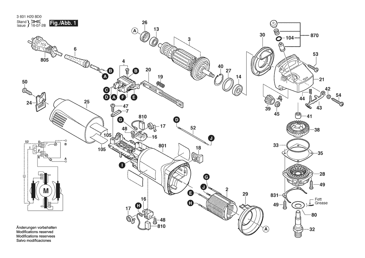 Zeichnung Sollten Sie Fragen zu einem Ersatzteil vom Bosch Winkelschleifer GWS 8-115 | 220 V | 022 - CL (3 601 H20 8N0) haben, können Sie uns gerne eine E-Mail (mit einem Foto vom Typenschild Ihres Gerätes) schreiben oder eine Ersatzteilanfrage stellen.