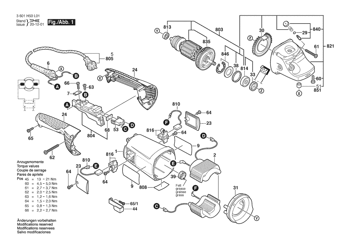 Zeichnung Sollten Sie Fragen zu einem Ersatzteil vom Bosch Winkelschleifer GWS 20-230H | 230 V | 001 - EU (3 601 H50 L01) haben, können Sie uns gerne eine E-Mail (mit einem Foto vom Typenschild Ihres Gerätes) schreiben oder eine Ersatzteilanfrage stellen.
