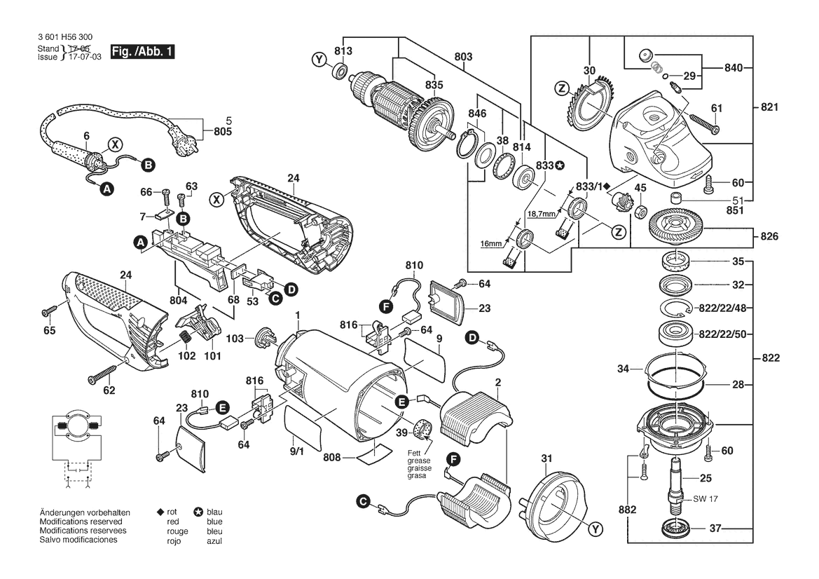 Zeichnung Sollten Sie Fragen zu einem Ersatzteil vom Bosch Winkelschleifer GWS 26-180 B | 240 V | 027 - AU (3 601 H55 K40) haben, können Sie uns gerne eine E-Mail (mit einem Foto vom Typenschild Ihres Gerätes) schreiben oder eine Ersatzteilanfrage stellen.