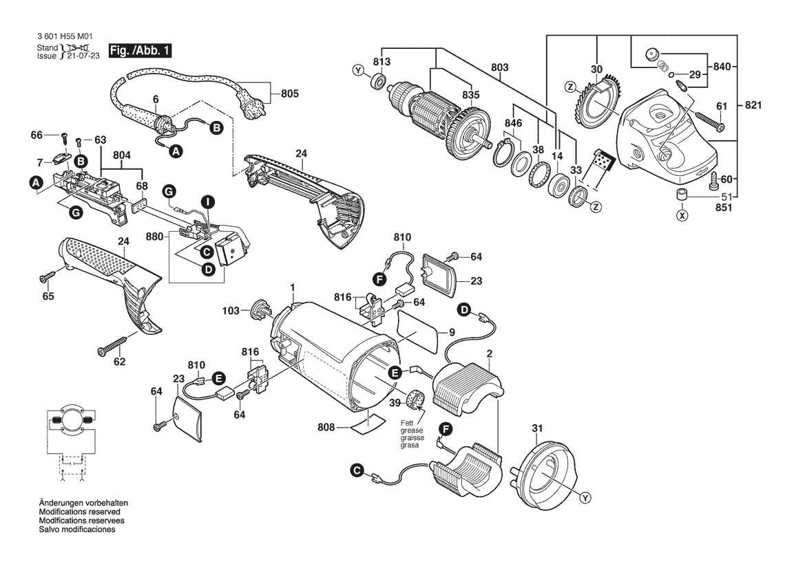 Folgende Ersatzteile für Bosch Winkelschleifer GWS 26-180 JH | 230 V | 001 - EU (3 601 H55 M01) können Sie hier bestellen: