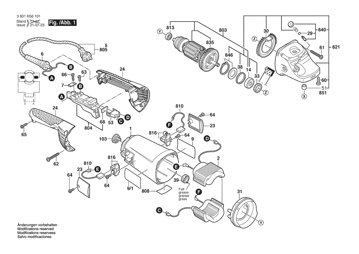 Folgende Ersatzteile für Bosch Winkelschleifer GWS 26-230 JH | 230 V | 001 - EU (3 601 H56 1P1) können Sie hier bestellen: