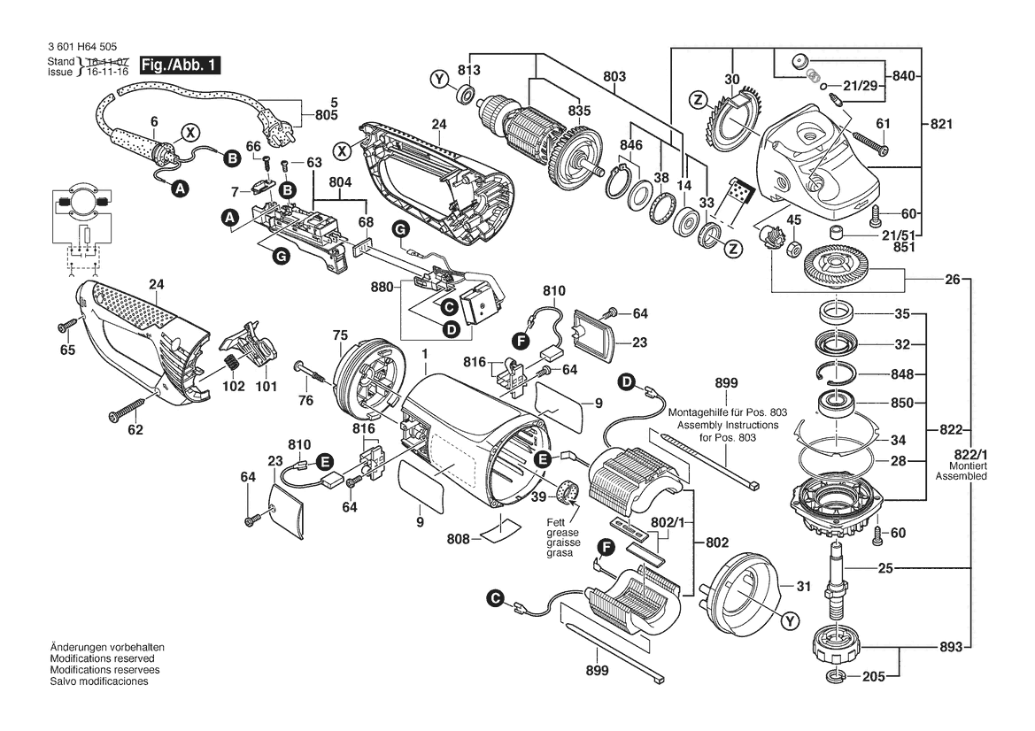 Zeichnung Sollten Sie Fragen zu einem Ersatzteil vom Bosch Winkelschleifer GWS 24-230 JVX (3 601 H64 506) haben, können Sie uns gerne eine E-Mail (mit einem Foto vom Typenschild Ihres Gerätes) schreiben oder eine Ersatzteilanfrage stellen.