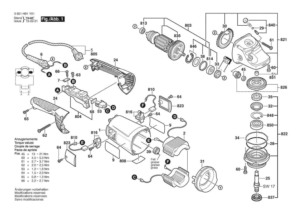 Zeichnung Sollten Sie Fragen zu einem Ersatzteil vom Bosch Winkelschleifer GWS 22-180 H | 230 V | 001 - EU (3 601 H81 Y01) haben, können Sie uns gerne eine E-Mail (mit einem Foto vom Typenschild Ihres Gerätes) schreiben oder eine Ersatzteilanfrage stellen.