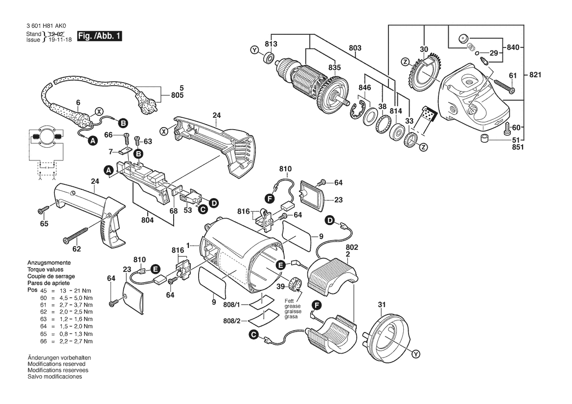 Zeichnung Sollten Sie Fragen zu einem Ersatzteil vom Bosch Winkelschleifer GWS 22-230 | 230 V | 026 - AS (3 601 H82 AK0) haben, können Sie uns gerne eine E-Mail (mit einem Foto vom Typenschild Ihres Gerätes) schreiben oder eine Ersatzteilanfrage stellen.