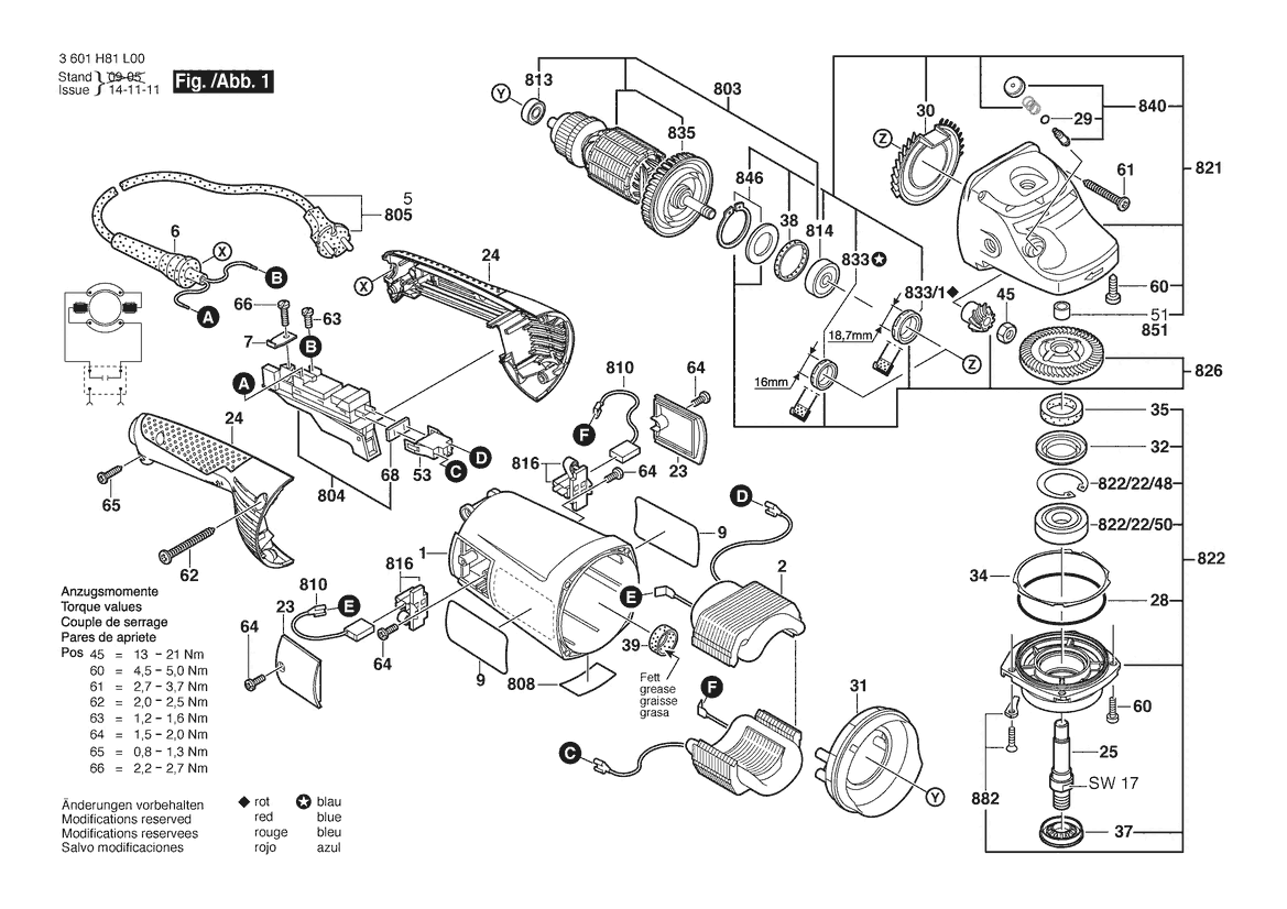 Zeichnung Sollten Sie Fragen zu einem Ersatzteil vom Bosch Winkelschleifer GWS 22 - 230 H | 230 V | 001 - EU (3 601 H82 L00) haben, können Sie uns gerne eine E-Mail (mit einem Foto vom Typenschild Ihres Gerätes) schreiben oder eine Ersatzteilanfrage stellen.