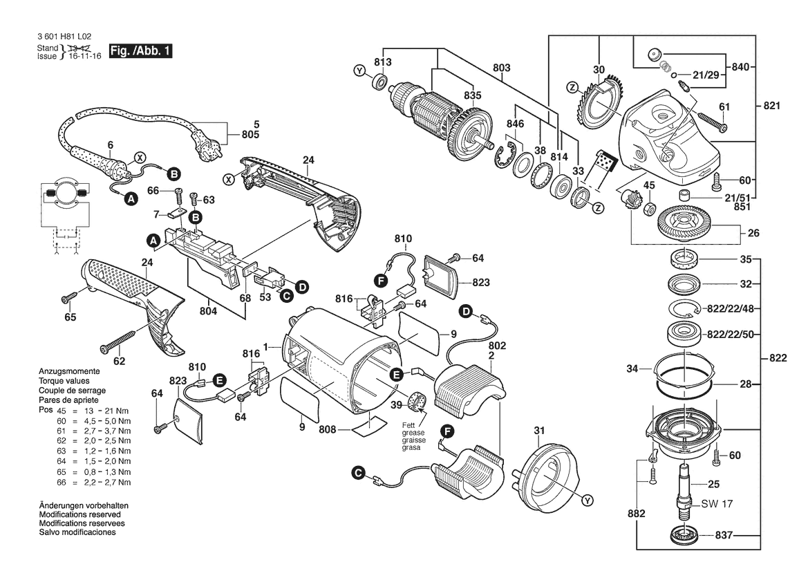 Zeichnung Sollten Sie Fragen zu einem Ersatzteil vom Bosch Winkelschleifer GWS 22-230 H | 230 V | 036 - GB (3 601 H82 L73) haben, können Sie uns gerne eine E-Mail (mit einem Foto vom Typenschild Ihres Gerätes) schreiben oder eine Ersatzteilanfrage stellen.