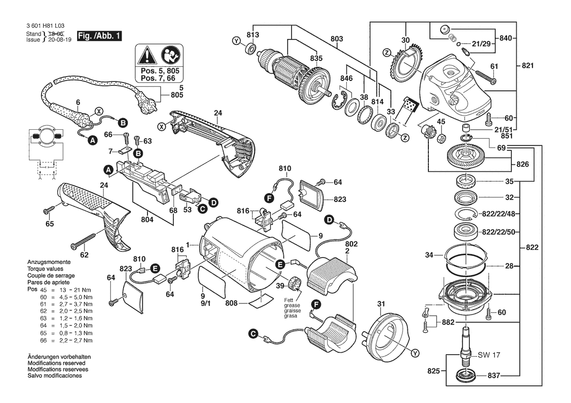 Zeichnung Sollten Sie Fragen zu einem Ersatzteil vom Bosch Winkelschleifer GWS 22-230 H | 230 V (3 601 H82 L75) haben, können Sie uns gerne eine E-Mail (mit einem Foto vom Typenschild Ihres Gerätes) schreiben oder eine Ersatzteilanfrage stellen.