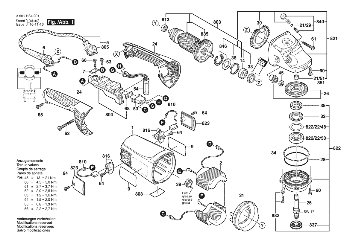 Folgende Ersatzteile für Bosch Winkelschleifer GWS 24-230 JH | 230 V | 001 - EU (3 601 H84 201) können Sie hier bestellen: