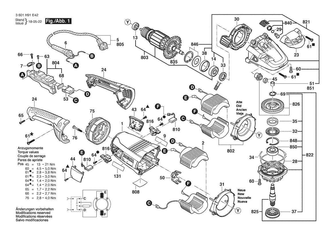 Zeichnung Sollten Sie Fragen zu einem Ersatzteil vom Bosch Winkelschleifer GWS 22-230 LV | 240 V (3 601 H91 E42) haben, können Sie uns gerne eine E-Mail (mit einem Foto vom Typenschild Ihres Gerätes) schreiben oder eine Ersatzteilanfrage stellen.