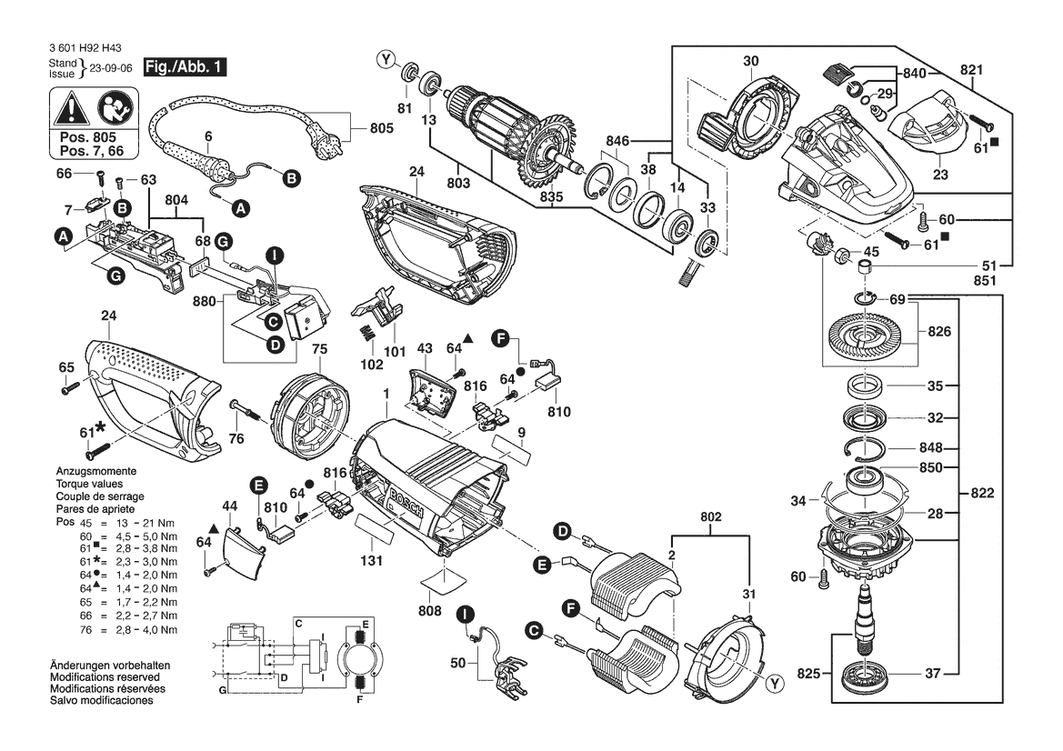 Zeichnung Sollten Sie Fragen zu einem Ersatzteil vom Bosch Winkelschleifer GWS 24-180 LVI | 230 V | 027 - AU (3 601 H92 H43) haben, können Sie uns gerne eine E-Mail (mit einem Foto vom Typenschild Ihres Gerätes) schreiben oder eine Ersatzteilanfrage stellen.