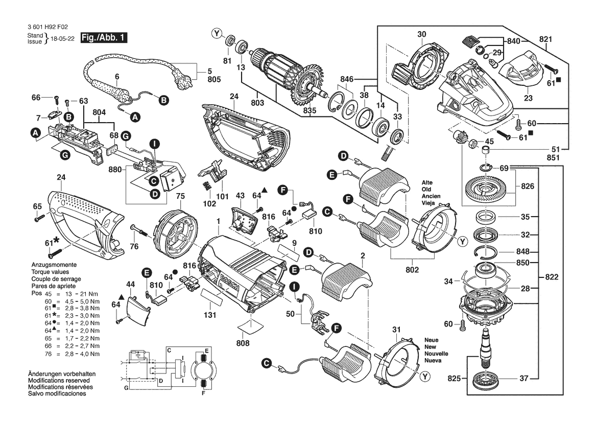 Ersatzteile für Bosch Winkelschleifer GWS 24-230 LVI | 220 V | 022 - CL (3 601 H93 HN2)