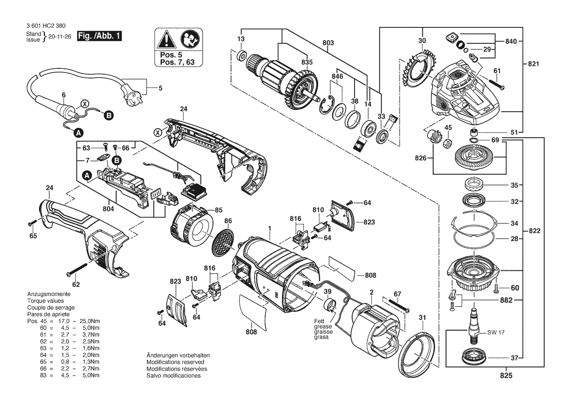 Zeichnung Sollten Sie Fragen zu einem Ersatzteil vom Bosch Winkelschleifer GWS 24-230 JZ | 230 V | 003 - EEU (3 601 HC3 301) haben, können Sie uns gerne eine E-Mail (mit einem Foto vom Typenschild Ihres Gerätes) schreiben oder eine Ersatzteilanfrage stellen.