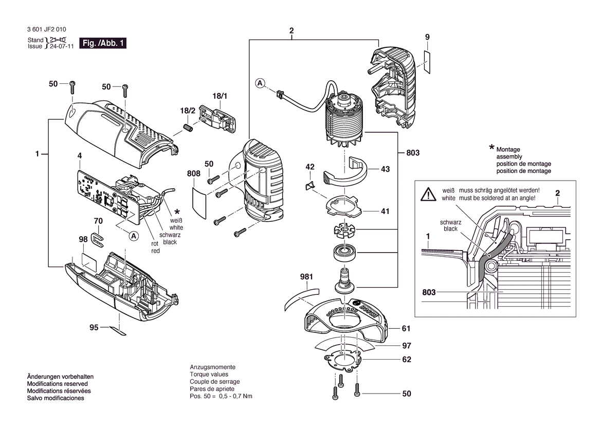 Zeichnung Sollten Sie Fragen zu einem Ersatzteil vom Bosch Akku-Winkelschleifer GWS12V-30 | 12 V | 061 - US (3 601 JF2 010) haben, können Sie uns gerne eine E-Mail (mit einem Foto vom Typenschild Ihres Gerätes) schreiben oder eine Ersatzteilanfrage stellen.