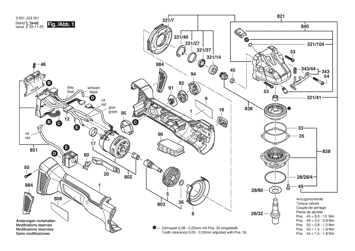 Zeichnung Sollten Sie Fragen zu einem Ersatzteil vom Bosch Akku-Winkelschleifer GWS 18V-10 C | 18 V | 006 - JP (3 601 JG3 051) haben, können Sie uns gerne eine E-Mail (mit einem Foto vom Typenschild Ihres Gerätes) schreiben oder eine Ersatzteilanfrage stellen.