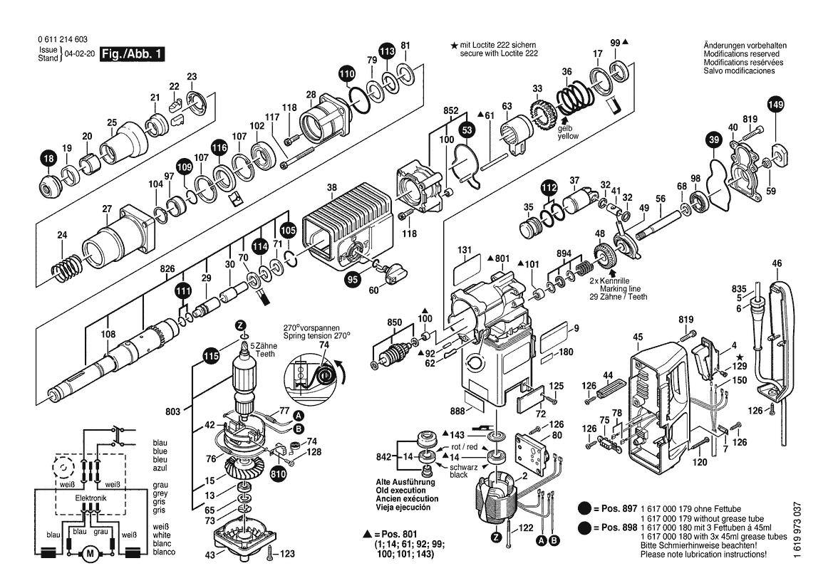 Zeichnung Sollten Sie Fragen zu einem Ersatzteil vom Bosch Bohrhammer GBH 8/65 DCE | 100 V | 006 - JP (0 611 214 638) haben, können Sie uns gerne eine E-Mail (mit einem Foto vom Typenschild Ihres Gerätes) schreiben oder eine Ersatzteilanfrage stellen.