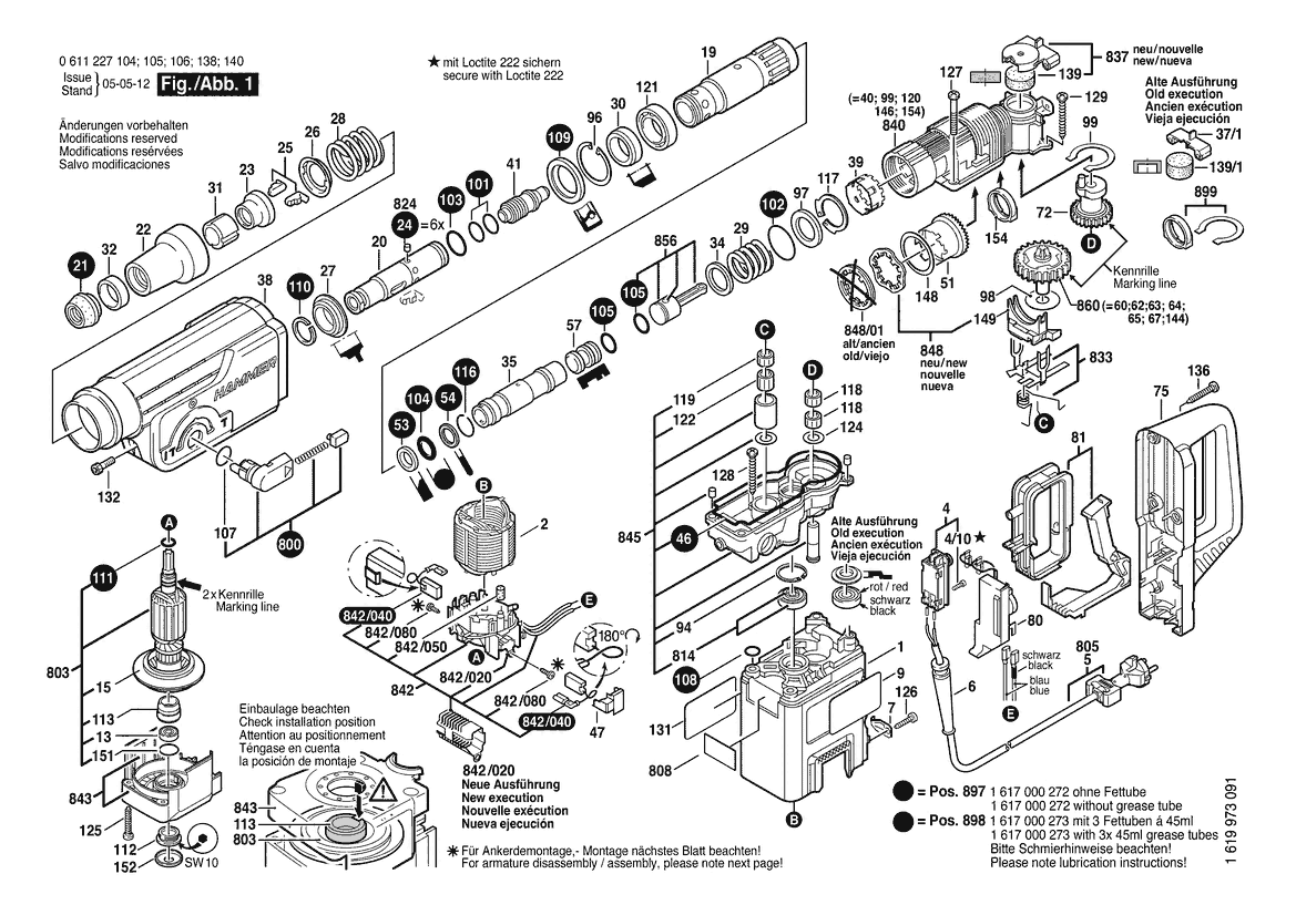 Zeichnung Sollten Sie Fragen zu einem Ersatzteil vom Bosch Bohrhammer GBH 38 | 240 V | 020 - MY (0 611 227 106) haben, können Sie uns gerne eine E-Mail (mit einem Foto vom Typenschild Ihres Gerätes) schreiben oder eine Ersatzteilanfrage stellen.