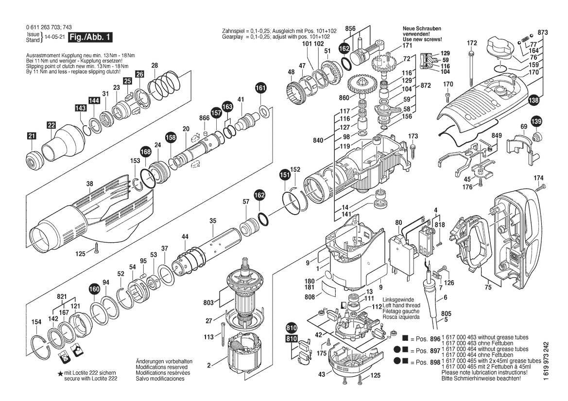 Zeichnung Sollten Sie Fragen zu einem Ersatzteil vom Bosch Bohrhammer GBH 7-46 DE | 220 V | 009 - CN (0 611 263 743) haben, können Sie uns gerne eine E-Mail (mit einem Foto vom Typenschild Ihres Gerätes) schreiben oder eine Ersatzteilanfrage stellen.