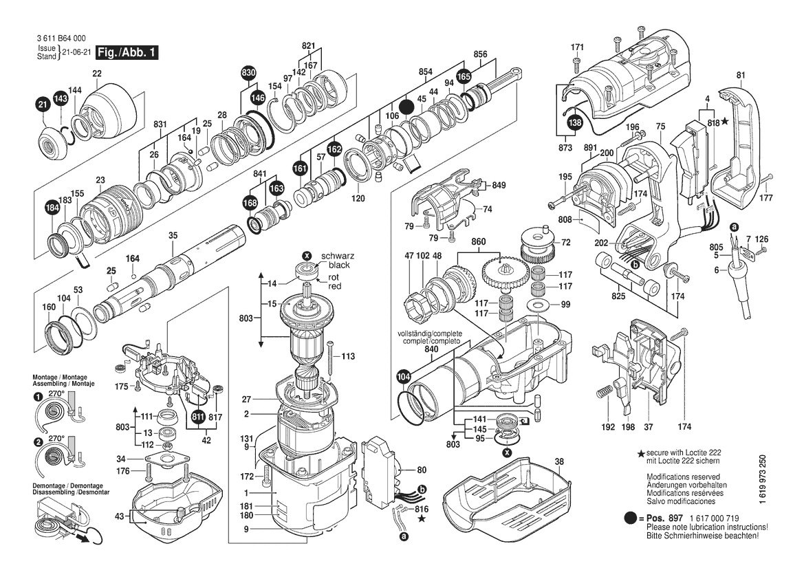 Zeichnung Sollten Sie Fragen zu einem Ersatzteil vom Bosch Bohrhammer GBH 5-40 DCE | 220 V | 011 - KR (3 611 B64 0B0) haben, können Sie uns gerne eine E-Mail (mit einem Foto vom Typenschild Ihres Gerätes) schreiben oder eine Ersatzteilanfrage stellen.