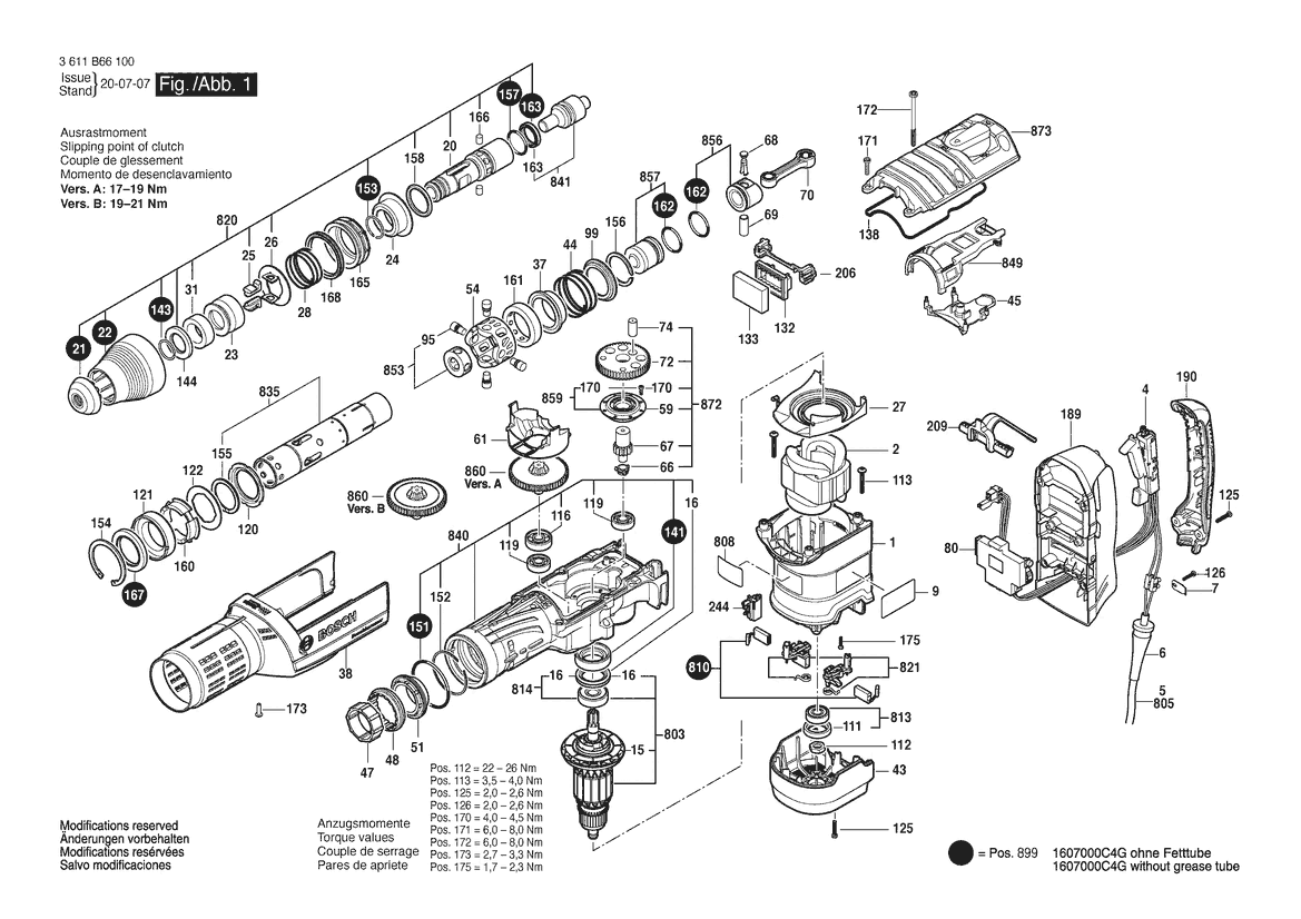 Ersatzteile für Bosch Bohrhammer GBH 12-52 D | 230 V | 004 - CH (3 611 B66 130) Zeichnung 1