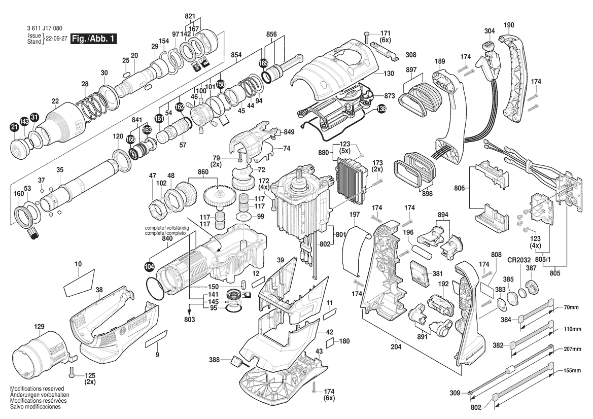 Zeichnung Sollten Sie Fragen zu einem Ersatzteil vom Bosch Akku-Bohrhammer GBH 18V-40 C (3 611 J17 080) haben, können Sie uns gerne eine E-Mail (mit einem Foto vom Typenschild Ihres Gerätes) schreiben oder eine Ersatzteilanfrage stellen.