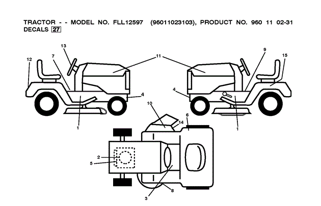 Ersatzteile für Flymo Gartentraktoren FLL12597 (ab Jun-2009) aus der Zeichnung 1 Gültig für Artikelnummer: 96011023103