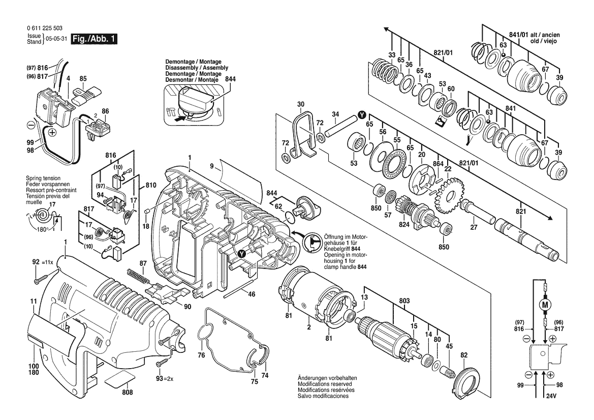 Ersatzteile für Bosch Gw-Akku-Bohrhammer GBH 24 VRE | 24 V | 012 - TW (0 611 225 505) Zeichnung 1
