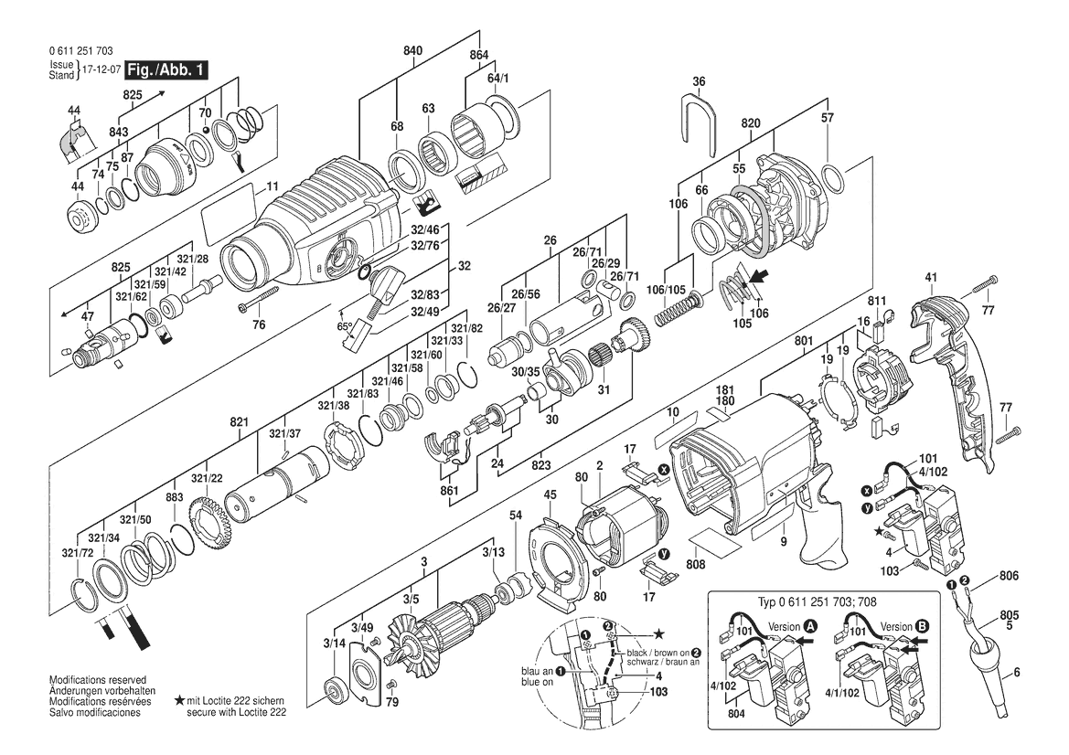 Zeichnung Sollten Sie Fragen zu einem Ersatzteil vom Bosch Hammerbohrmaschine GBH 2-26 RE | 230 V | 041 - IN (0 611 251 7X0) haben, können Sie uns gerne eine E-Mail (mit einem Foto vom Typenschild Ihres Gerätes) schreiben oder eine Ersatzteilanfrage stellen.